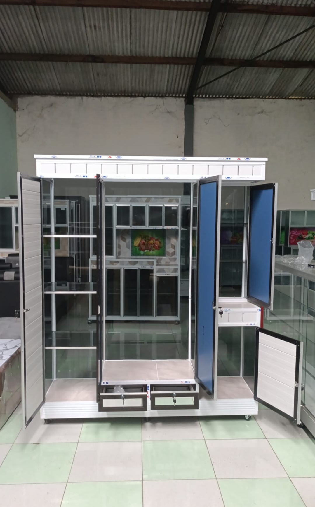 *Lemari kaca alumunium 4 pintu 1 Laci + tempat rias