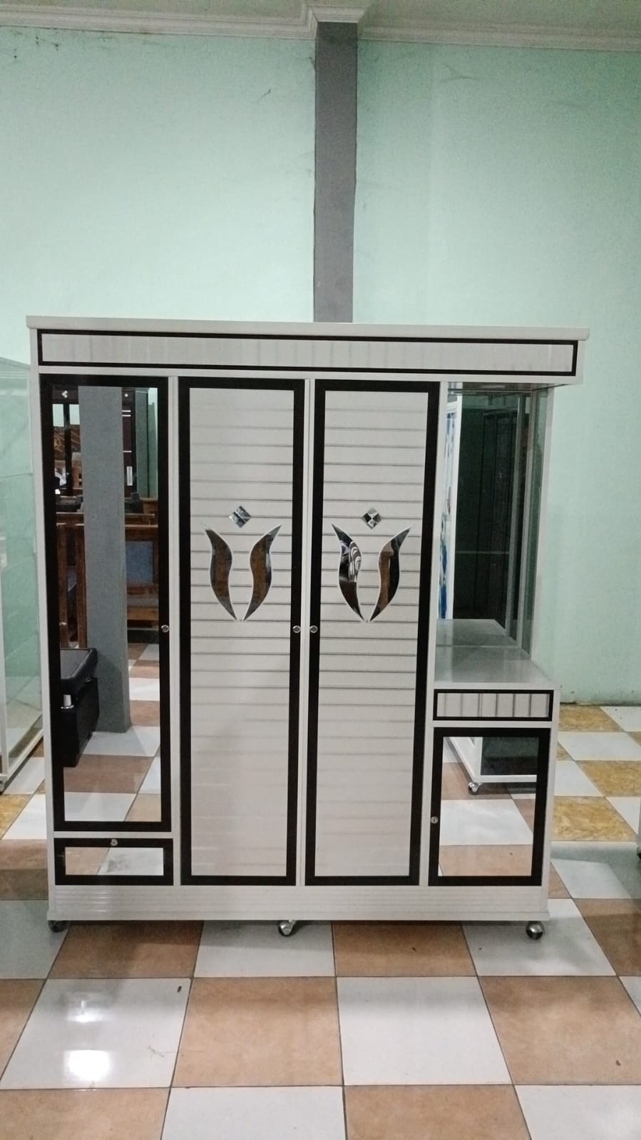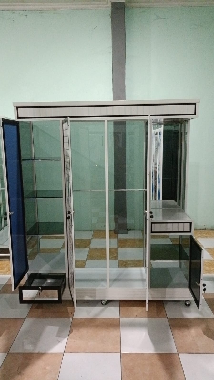 *Lemari kaca alumunium 4 pintu 1 Laci + tempat rias