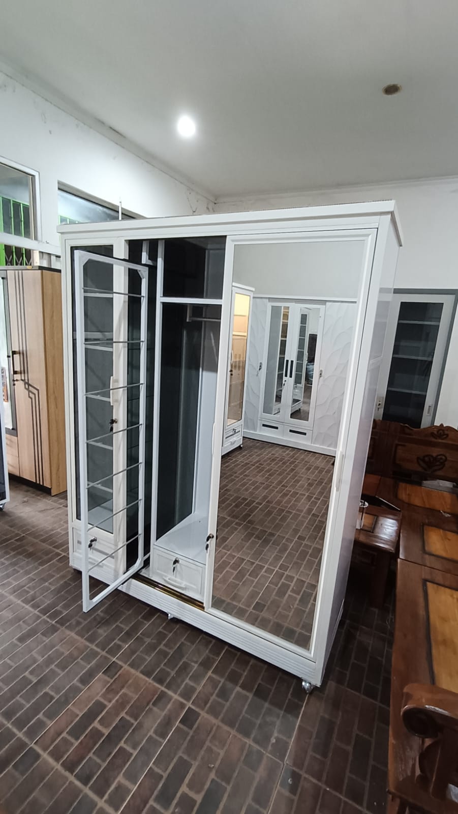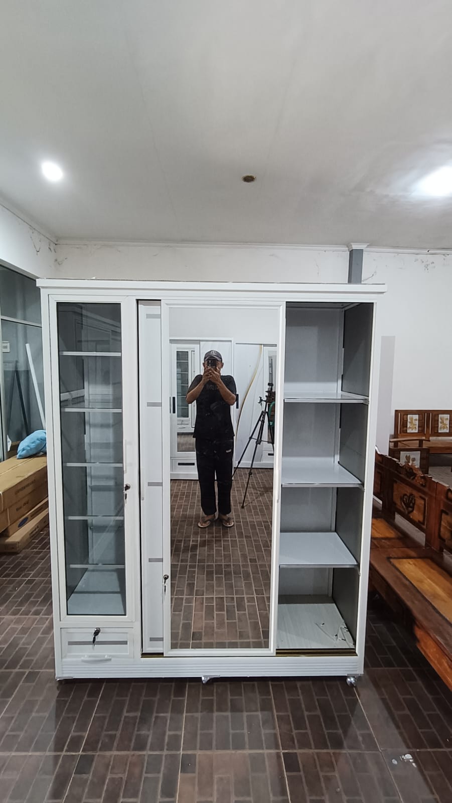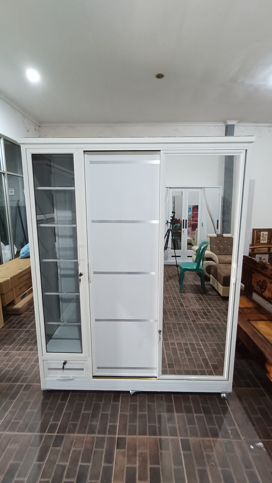 *Lemari aluminium 3 pintu 2 rak 1 gantung 2 laci dan tempat hijab* P150 x L50 x T185